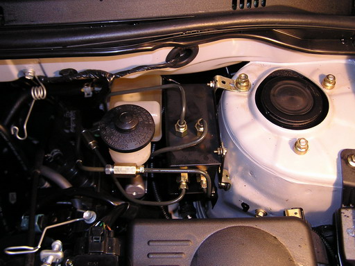 The hydraulic control unit of the R-367 Car-Blocker System is installed in the engine compartment between the master brake cylinder and the first assistance system or, in older vehicles, between the master brake cylinder and the T-distributors on the left / right front and rear. The main control unit and the operating elements are installed in the vehicle interior. The electrical connection is limited to battery +, terminal 15 (ignition) and battery - (ground).